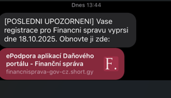 Tato zpráva není od Finanční správy ČR. Odkaz vede na podvodnou doménu, která se pouze snaží napodobit oficiální stránky.